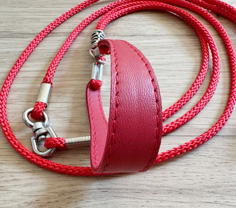 Laisse - collier rouge et perles